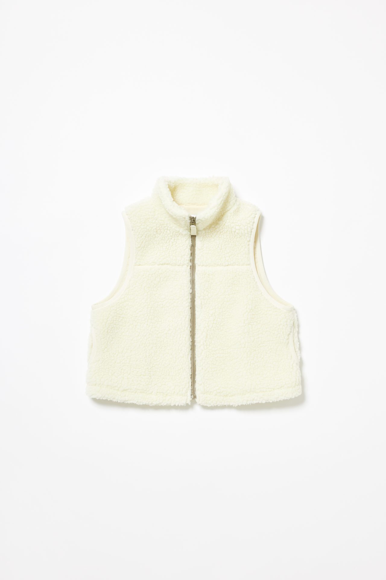 ベストはボア仕様も用意されており、こちらはふんわりとした着心地がたまりません。シンプルなデザインにまとまっているので着回しもきくのでは。カラーは、ナチュラルとダークグレーの2カラー展開。