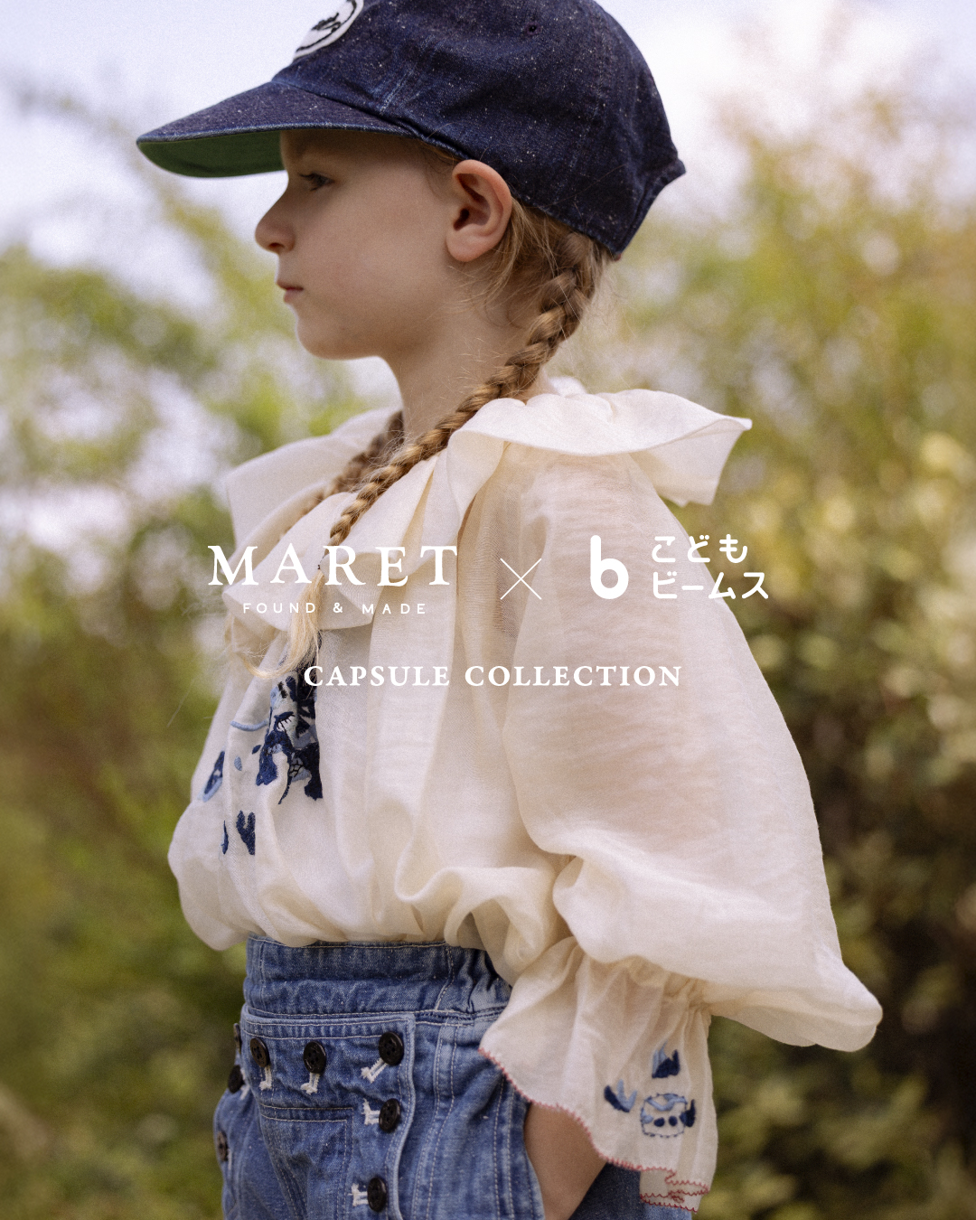 デニムアイテムは着る人によって表情が異なり、長く着れば着るほどその人の味が出てくるものですよね。今回はそのデニムにフォーカスしたトピックを紹介します。それは日本製デニムでヴィンテージカジュアルアイテムを展開し、世界でも高い評価を得ている「マレ(Maret)」と、キッズファッションの人気レーベル「こども ビームス(kodomo BEAMS)」による限定カプセルコレクション。両者によるコラボレーションは初で、10月3日(金)から「こども ビームス(代官山)」とビームス公式オンラインショップスタートする。