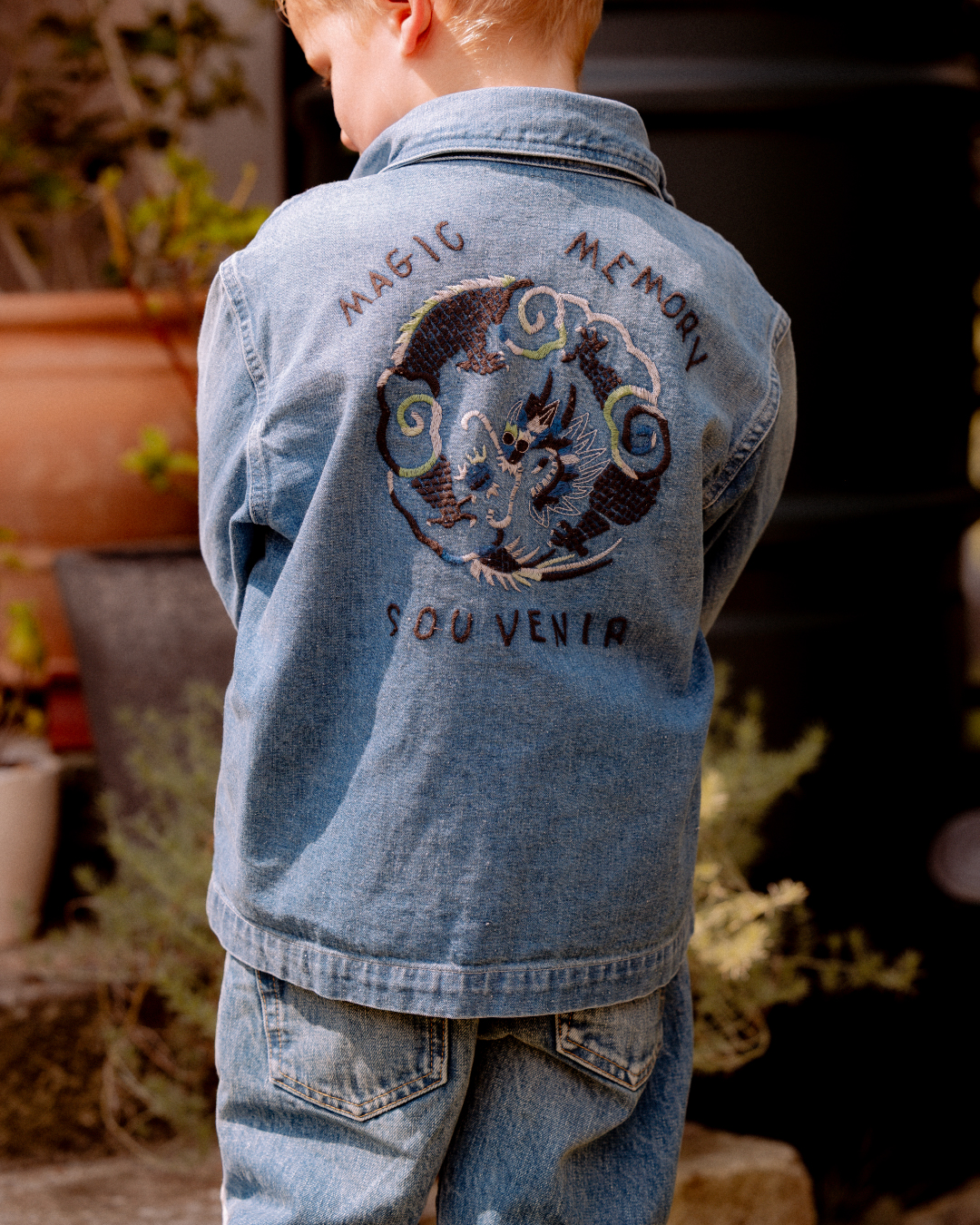 今回ローンチされるコレクションは、「マレ」が得意とするリメイクや加工、刺しゅうなどの技術をふんだんに落とし込んだ本格的なデニムコレクションです。“永く愛せる本物を、子ども達へ”という思いが具現化されており、1点1点ていねいに仕上げられているのにも注目ください。
