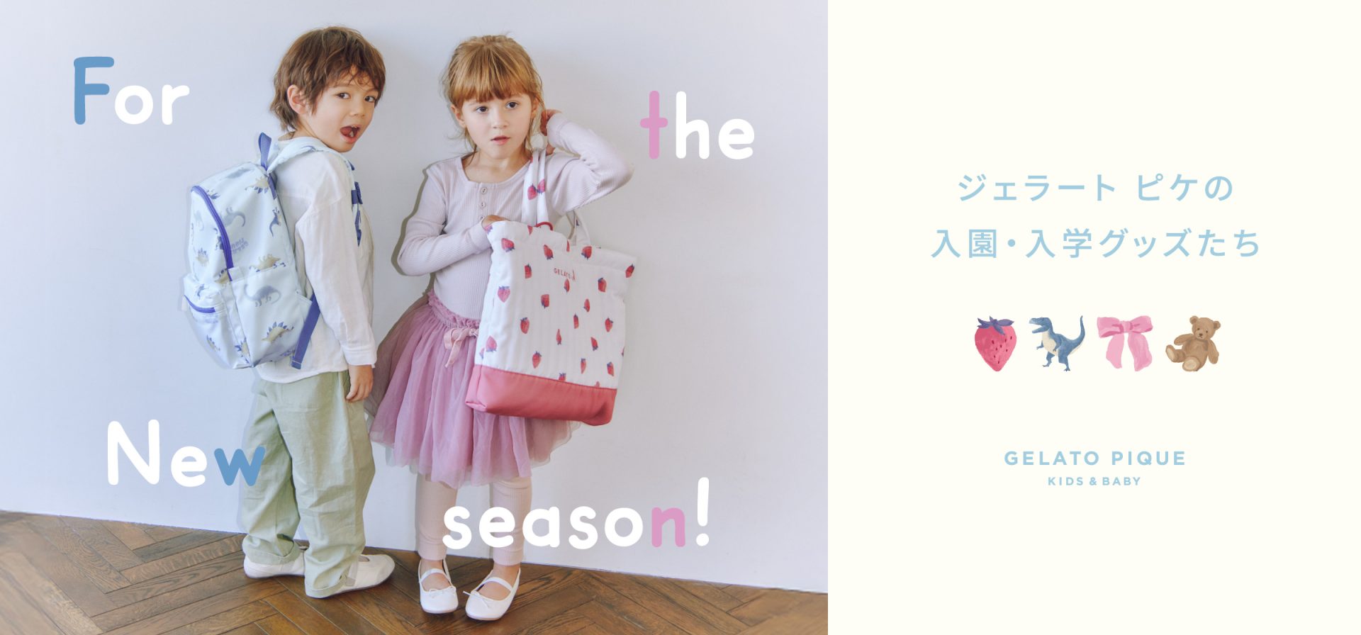 間もなくキッズだけじゃなく、パパママにとってもドキドキな入園・入学シーズンの到来です。準備はOKですか? 今回紹介するトピックは、まだキッズ&ベビーの入園・入学グッズを探しているという方におすすめです。それはルームウェアブランド 「ジェラート ピケ(gelato pique)」のキッズ&ベビーライン、「ジェラート ピケ キッズ&ベビー(GELATO PIQUE KIDS & BABY)」からリリースされる新作グッズです。1月22日(木)から、公式オンラインストアなどで先行予約がスタートしており、2月4日(水)からは全国の「ジェラートピケ」一部直営店や公式オンラインストアなどでも取り扱う。